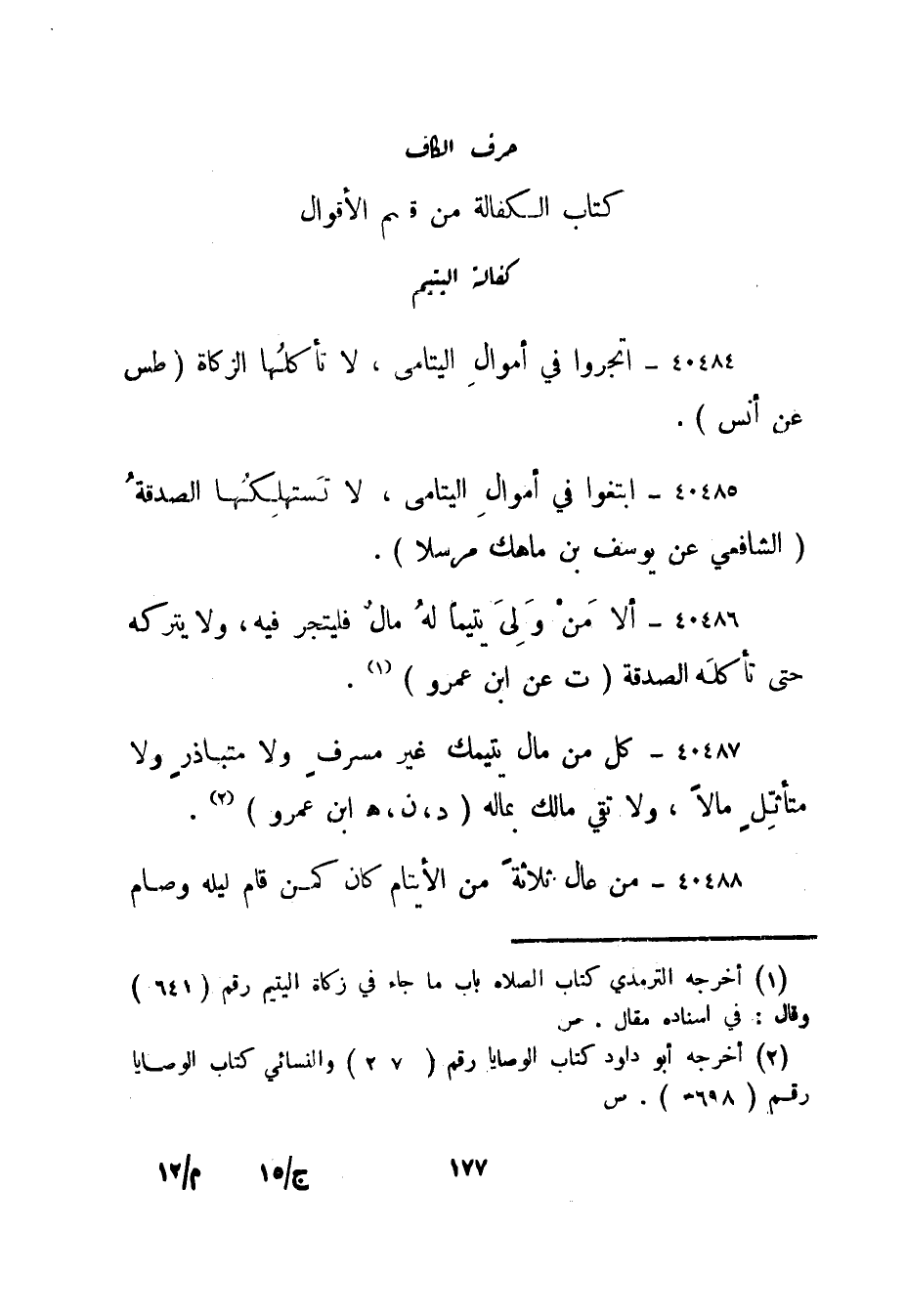 40486- ألا من ولى يتيما له مال فليتجر فيه، ولا يتركه حتى تأكله الصدقة."ت عن ابن عمرو"1