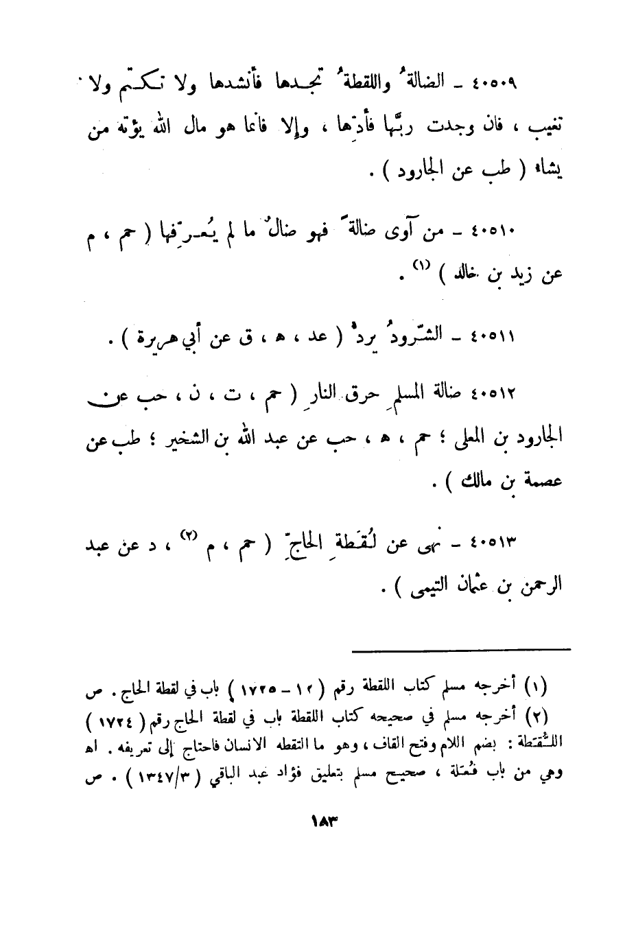 40513- نهى عن لقطة الحاج."حم، م "2 د عن عبد الرحمن بن عثمان التيمى".