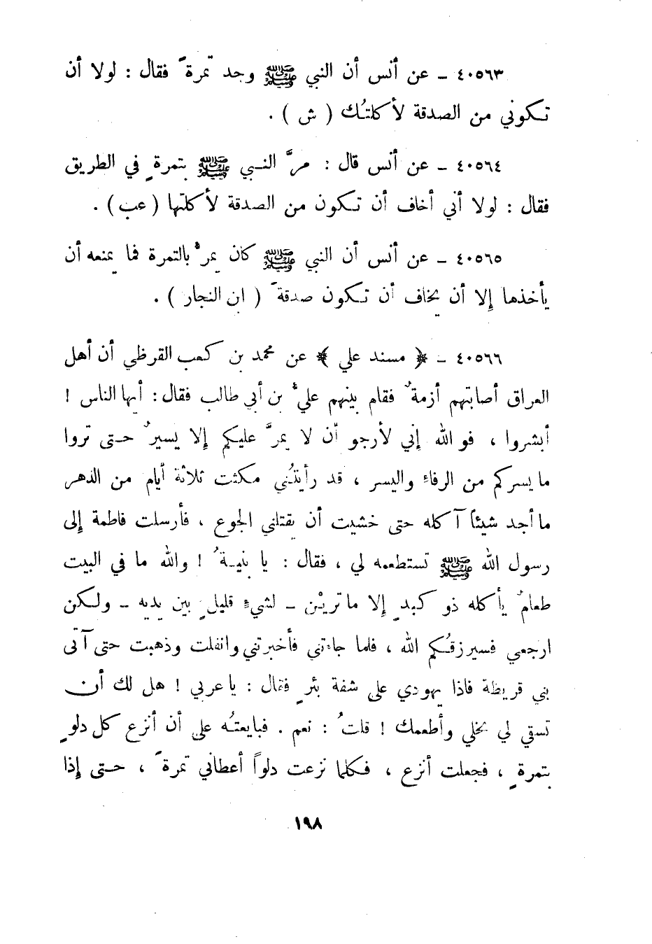 40563- عن أنس أن النبي صلى الله عليه وسلم وجد تمرة فقال: لولا أن تكوني من الصدقة لأكلتك."ش".