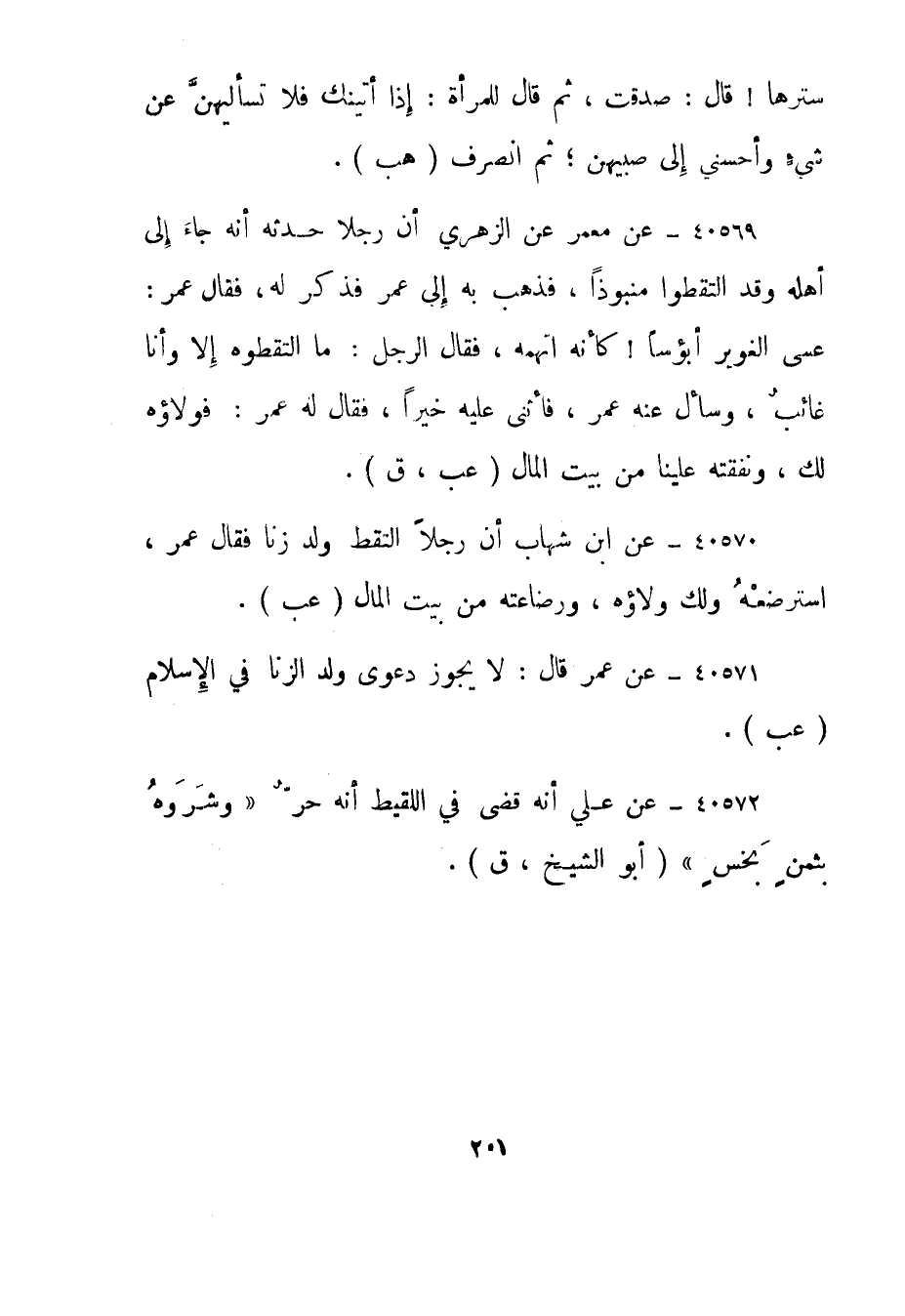 40570- عن ابن شهاب أن رجلا التقط ولد زنا فقال عمر، استرضعه ولك ولاؤه، ورضاعته من بيت المال."عب".