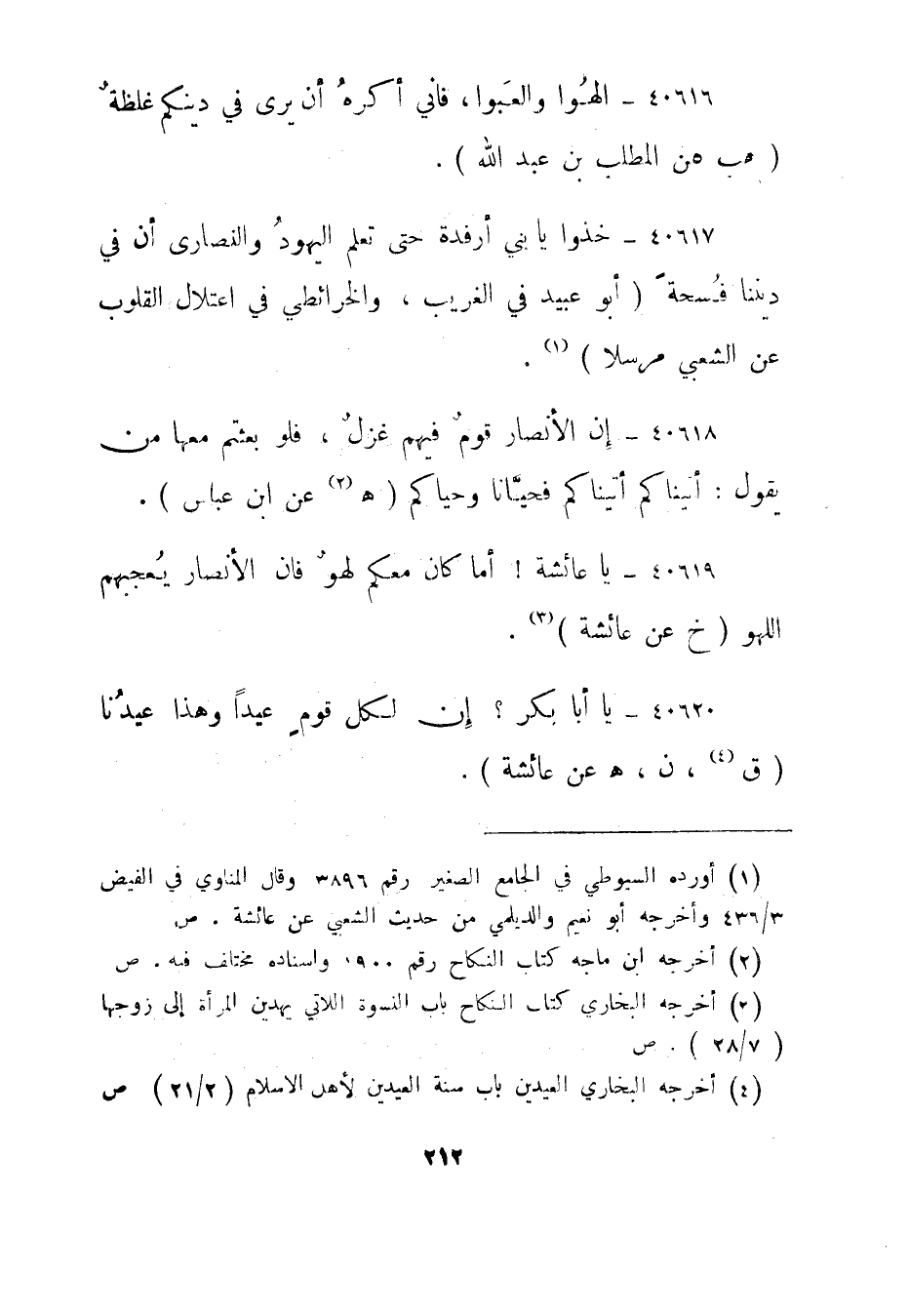 40619- يا عائشة! أما كان معكم لهو فإن الأنصار يعجبهم اللهو."خ عن عائشة "3