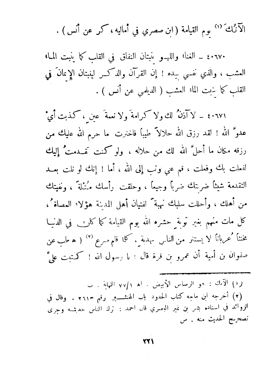 40670- الغناء واللهو ينبتان النفاق في القلب كما ينبت الماء العشب، والذي نفسي بيده! إن القرآن والذكر لينبتان الإيمان في القلب كما ينبت الماء العشب."الديلمي عن أنس".