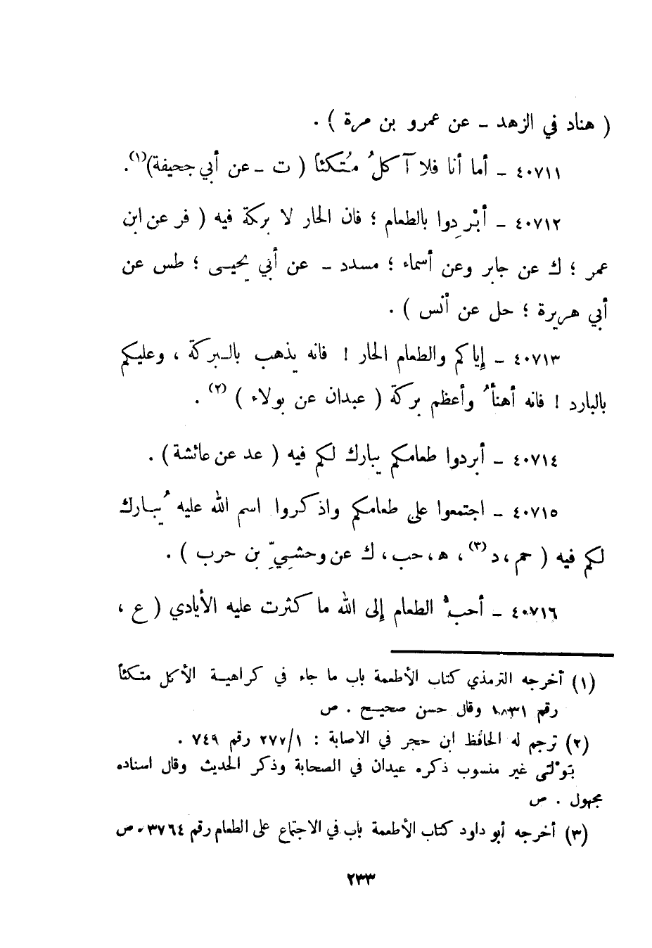 40714- أبردوا طعامكم يبارك لكم فيه."عد عن عائشة".