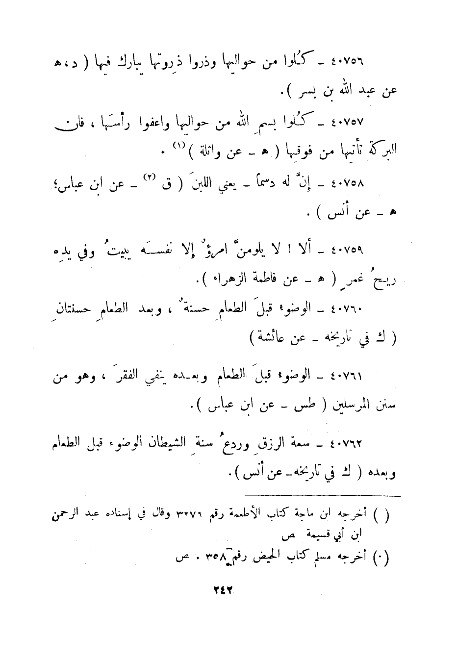 1 أخرجه ابن ماجه كتاب الأطعمة رقم 3276 وقال في إسناده عبد الرحمن ابن أبي قسيمة. ص.