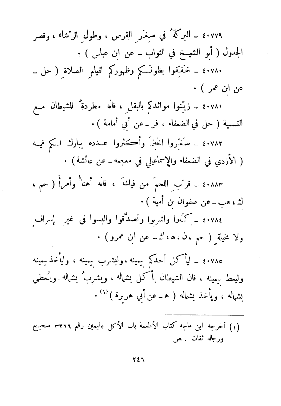 1 أخرجه ابن ماجه كتاب الأطعمة باب الأكل باليمين رقم 3266 صحيح ورجاله ثقات. ص.