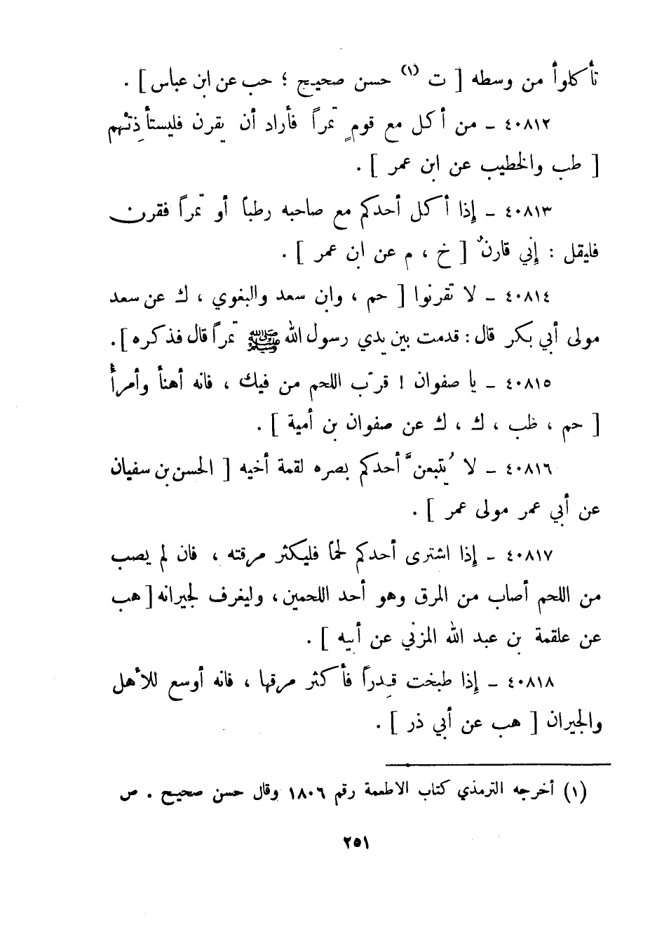 40812- من أكل مع قوم تمرا فأراد أن يقرن فليستأذنهم. طب والخطيب عن ابن عمر