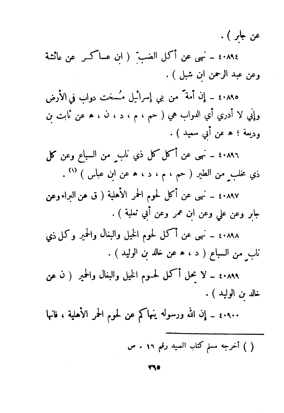 40896- نهى عن أكل كل ذي ناب من السباع وعن كل ذي مخلب من الطير."حم، م، د، هـ عن ابن عباس" 1.