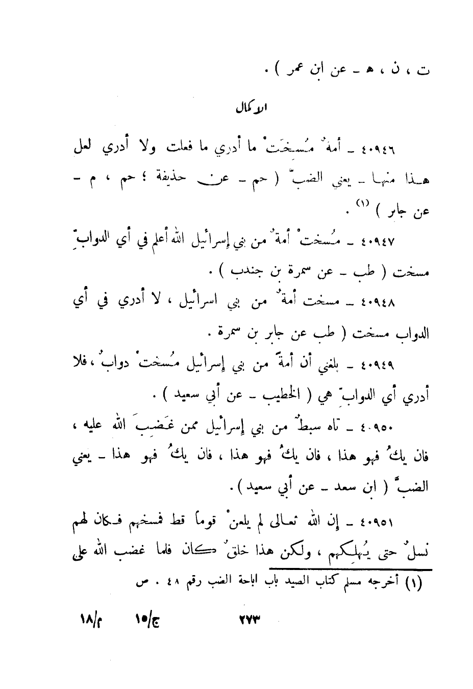 1 أخرجه مسلم كتاب الصيد باب إباحة الضب رقم 48. ص.