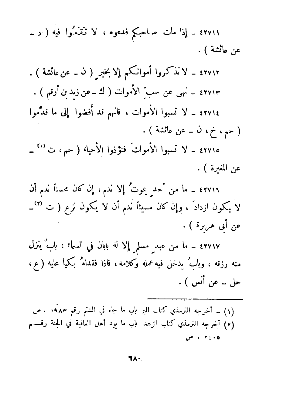 42712- لا تذكروا أمواتكم إلا بخير."ن - عن عائشة".
