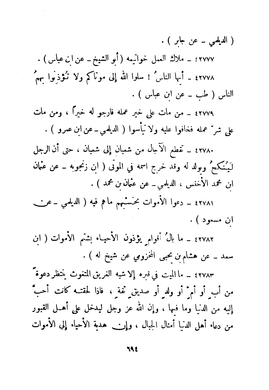 42781- دعوا الأموات بحسبهم ما هم فيه."الديلمي - عن ابن مسعود".
