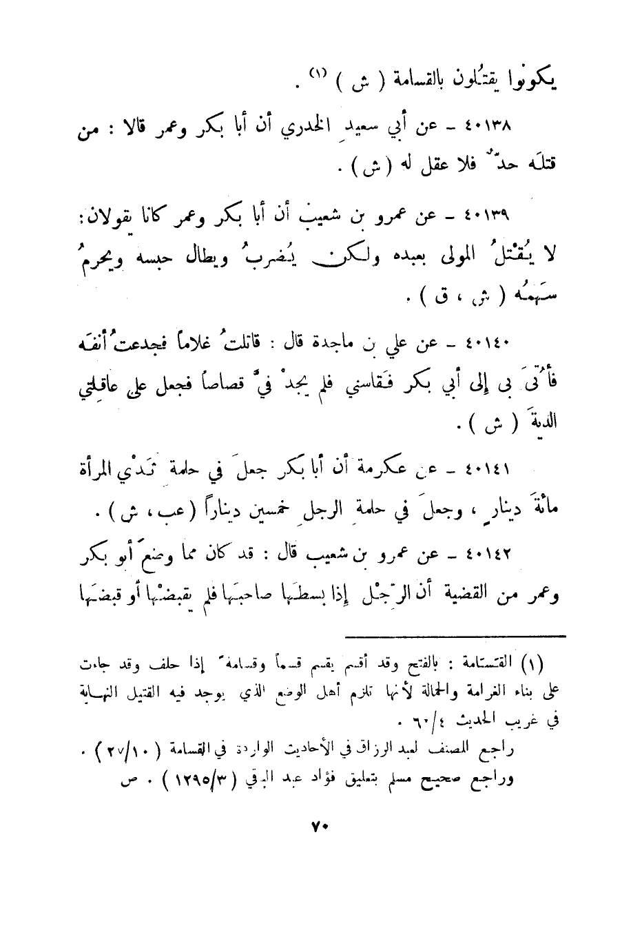 راجع المصنف لعبد الرزاق في الأحاديث الواردة في القسامة "10/27".وراجع صحيح مسلم بتعليق فؤاد عبد الباقي "3/1295". ص.