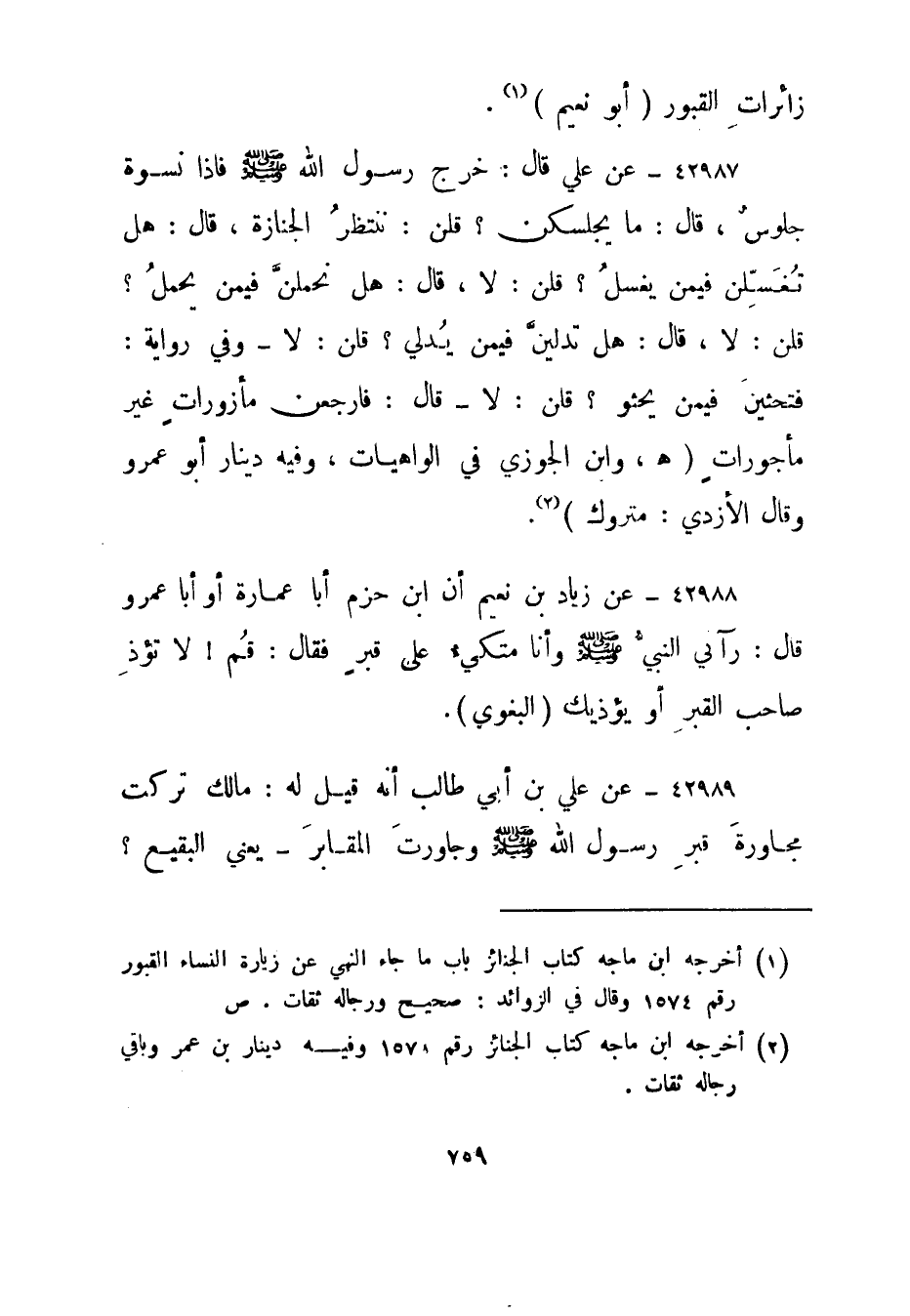 1 أخرجه ابن ماجه كتاب الجنائز باب ما جاء النهي عن زيارة النساء القبور رقم 1574 وقال في الزوائد: صحيح ورجاله ثقات. ص.