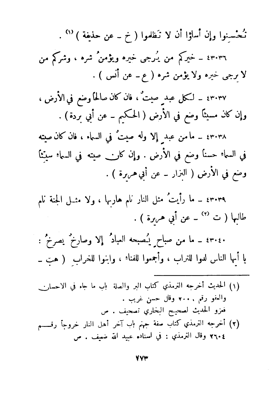 43037- لكل عبد صيت، فإن كان صالحا وضع في الأرض، وإن كان مسيئا وضع في الأرض."الحكيم - عن أبي بردة".