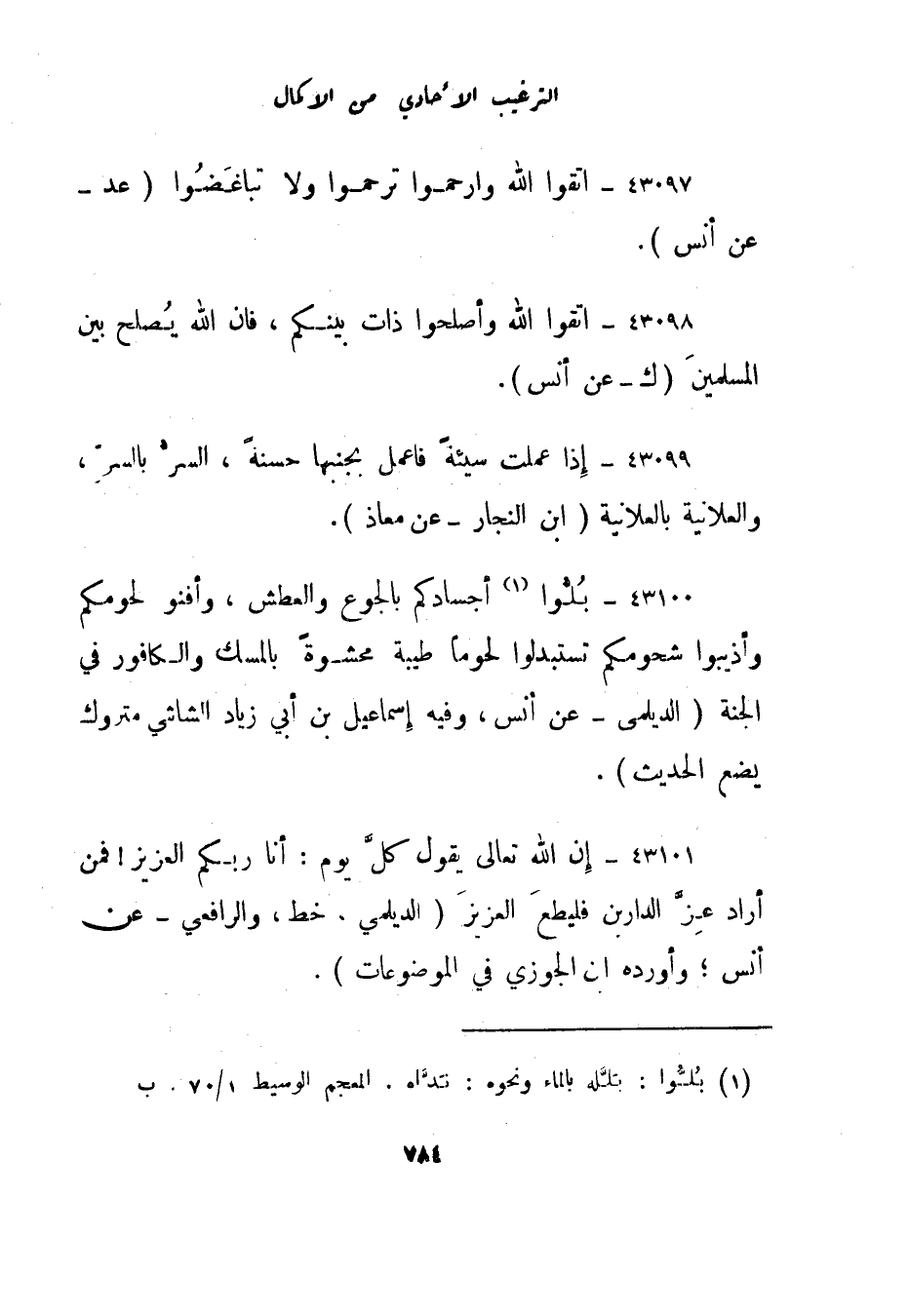 43097- اتقوا الله وارحموا ترحموا ولا تباغضوا."عد - عن أنس".