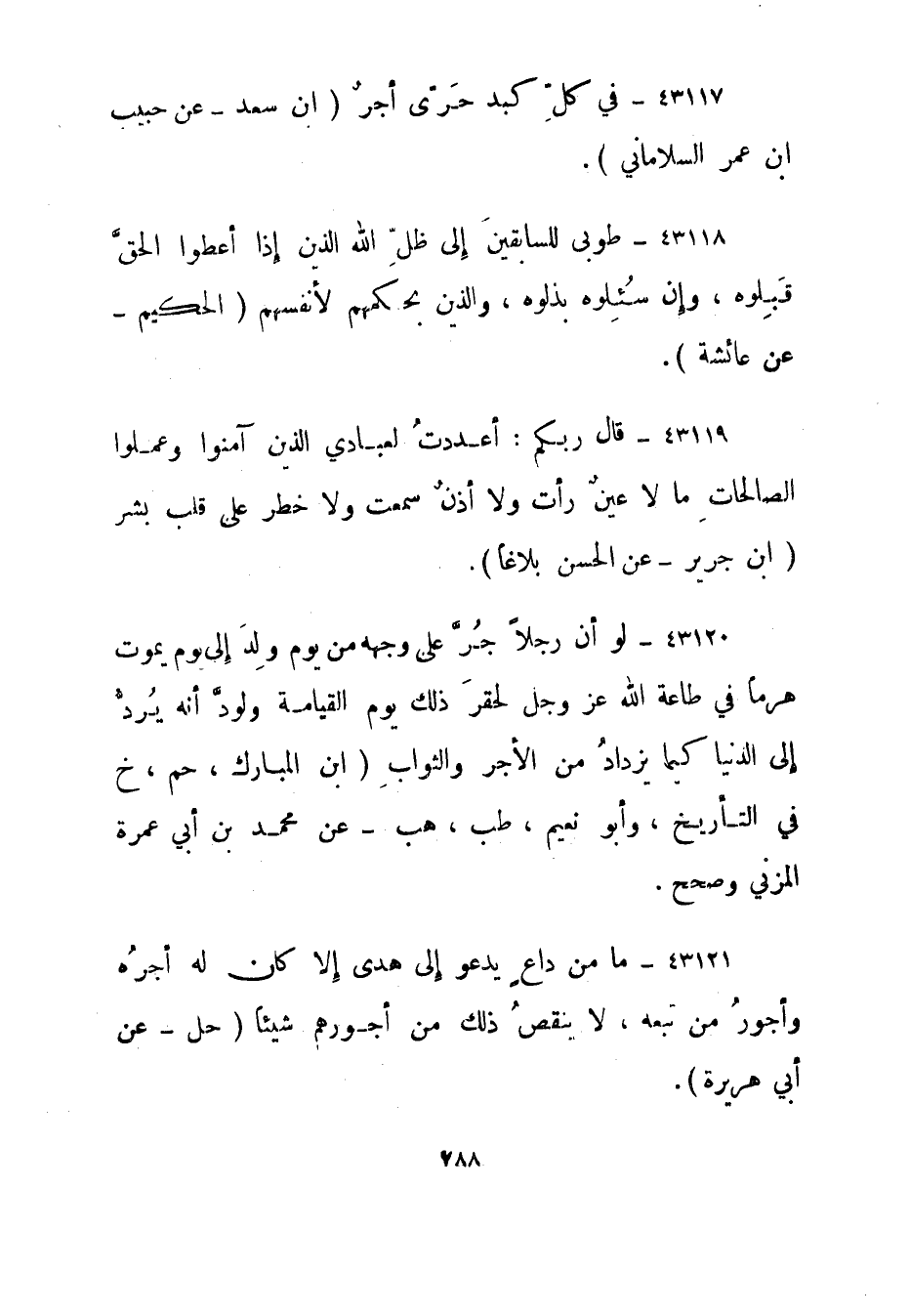 43117- في كل كبد حرى أجر."ابن سعد - عن حبيب ابن عمر السلاماني".