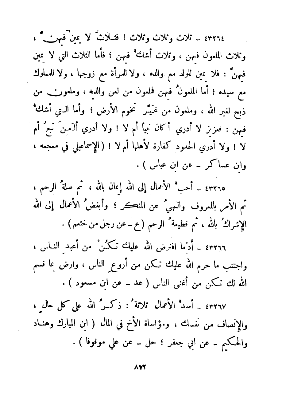 43265 - أحب الأعمال إلى الله إيمان بالله، ثم صلة الرحم، ثم الأمر بالمعروف والنهي عن المنكر؛ وأبغض الأعمال إلى الله الإشراك بالله، ثم قطيعة الرحم." ع - عن رجل من خثعم".
