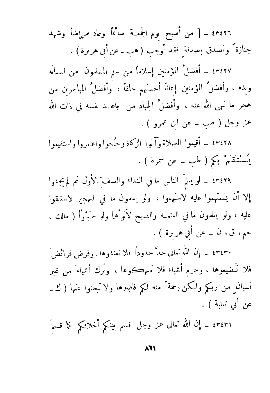 43428- أقيموا الصلاة وآتوا الزكاة وحجوا واعتمروا واستقيموا يستقم بكم."طب - عن سمرة".