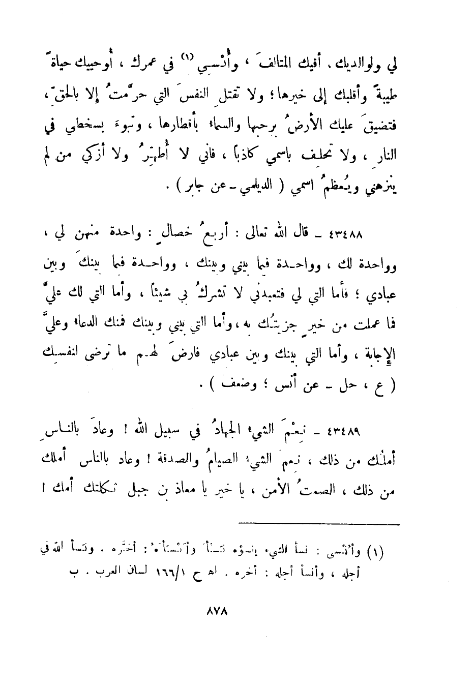 43489- نعم الشيء الجهاد في سبيل الله! وعاد بالناس أملك من ذلك، نعم الشيء الصيام والصدقة! وعاد بالناس أملك من ذلك، الصمت الأمن، يا خير يا معاذ بن جبل ثكلتك أمك!