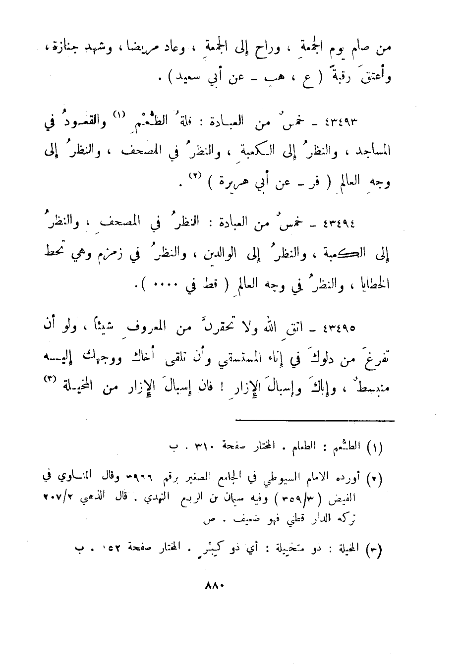 43493- خمس من العبادة: قلة الطعم "1 والقعود في المساجد، والنظر إلى الكعبة، والنظر في المصحف، والنظر إلى وجه العالم."فر - عن أبي هريرة" "2