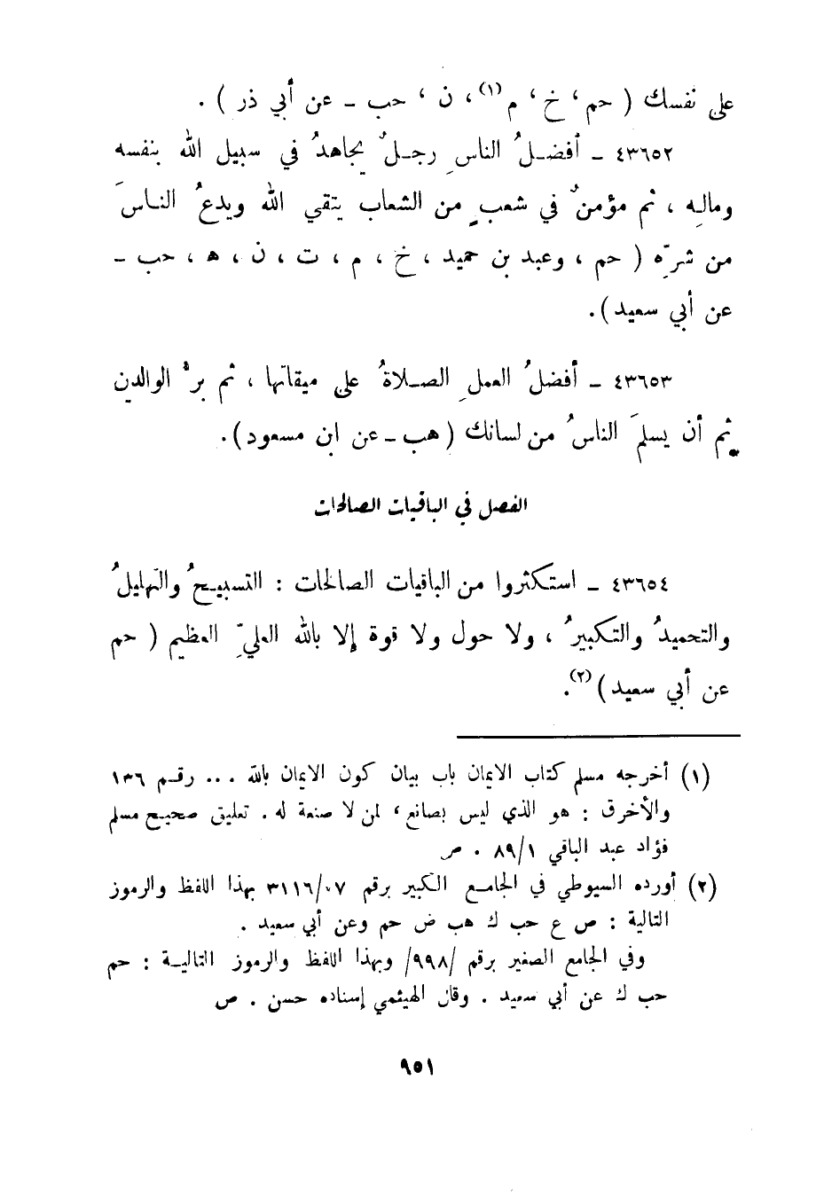 43654- استكثروا من الباقيات الصالحات: التسبيح والتهليل والتحميد والتكبير، ولا حول ولا قوة إلا بالله العلي العظيم."حم عن أبي سعيد" "2