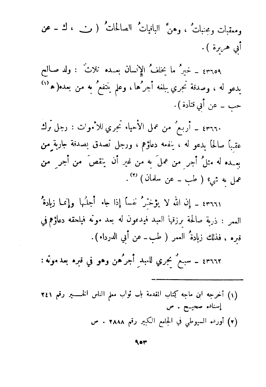 43660- أربع من عمل الأحياء تجري للأموات: رجل ترك عقبا صالحا يدعو له، ينفعه دعاؤهم، ورجل تصدق بصدقة جارية من بعده له مثل أجر من عمل به من غير أن ينقص من أجر من عمل به شيء."طب - عن سلمان "2