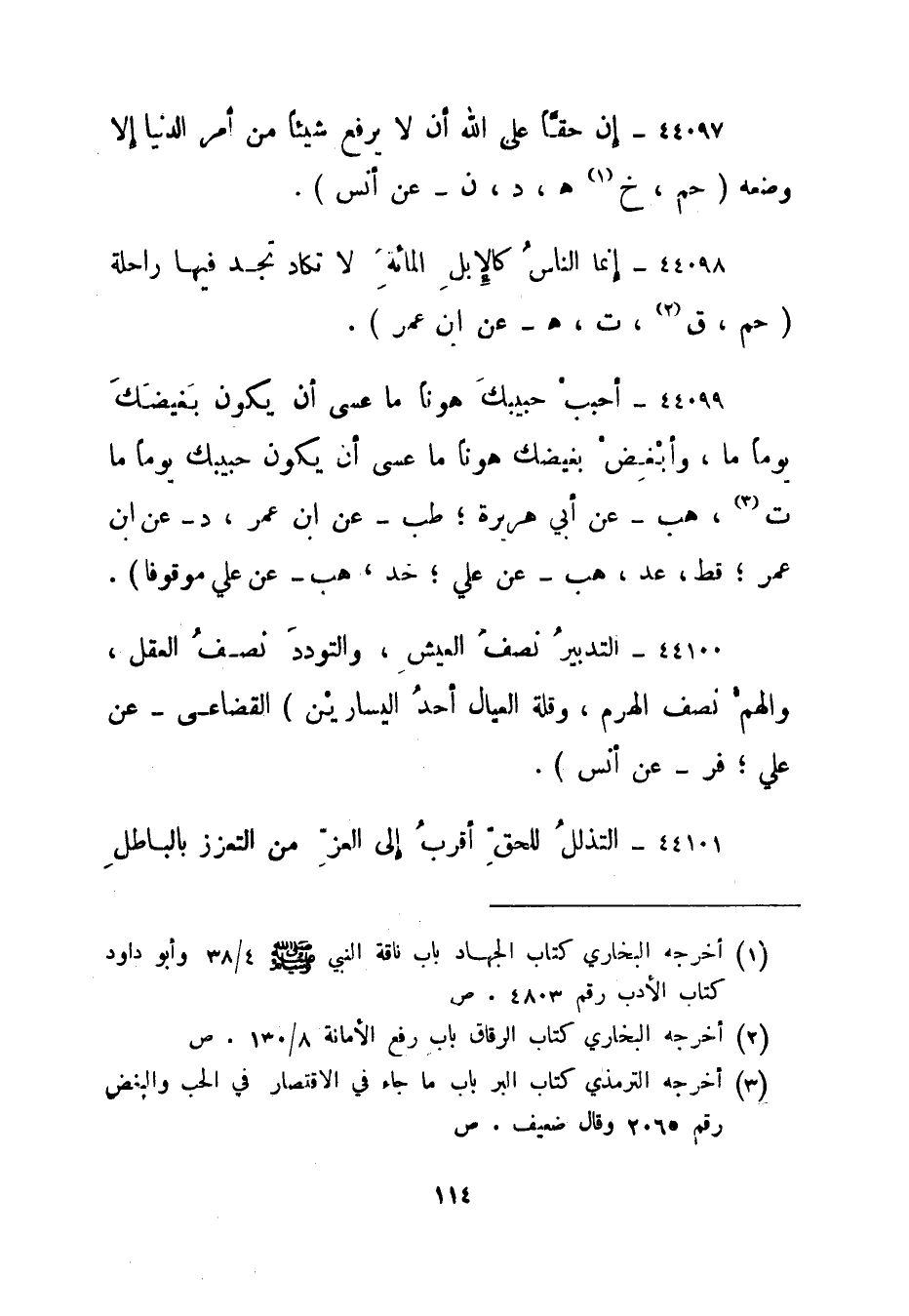 44099- أحبب حبيبك هونا ما عسى أن يكون بغيضك يوما ما، وأبغض بغيضك هونا ما عسى أن يكون حبيبك يوما ما. "ت 3، هب - عن أبي هريرة؛ طب - عن ابن عمر، د - عن ابن عمر؛ قط، عد، هب - عن علي؛ خد، هب - عن علي موقوفا".