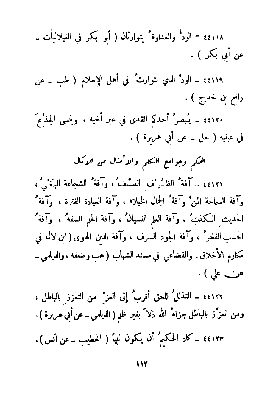 44119- الود الذي يتوارث في أهل الإسلام. "طب - عن رافع بن خديج".