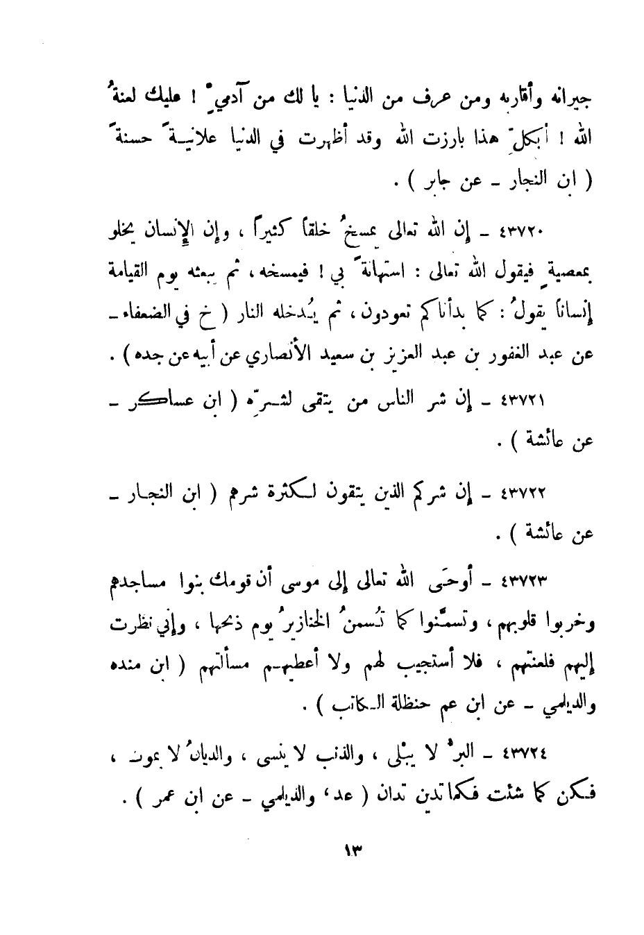 43721- إن شر الناس من يتقى لشره. "ابن عساكر - عن عائشة".