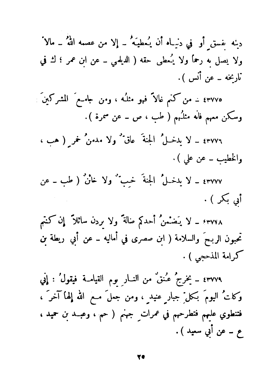 43776- لا يدخل الجنة عاق ولا مدمن خمر. "هب، والخطيب - عن علي".