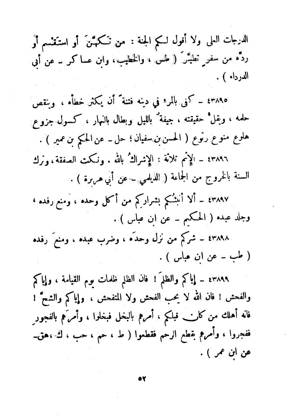 الدرجات العلى ولا أقول لكم الجنة: من تكهن أو استقسم أو رده من سفر تطير. "طس، والخطيب، وابن عساكر - عن أبي الدرداء".