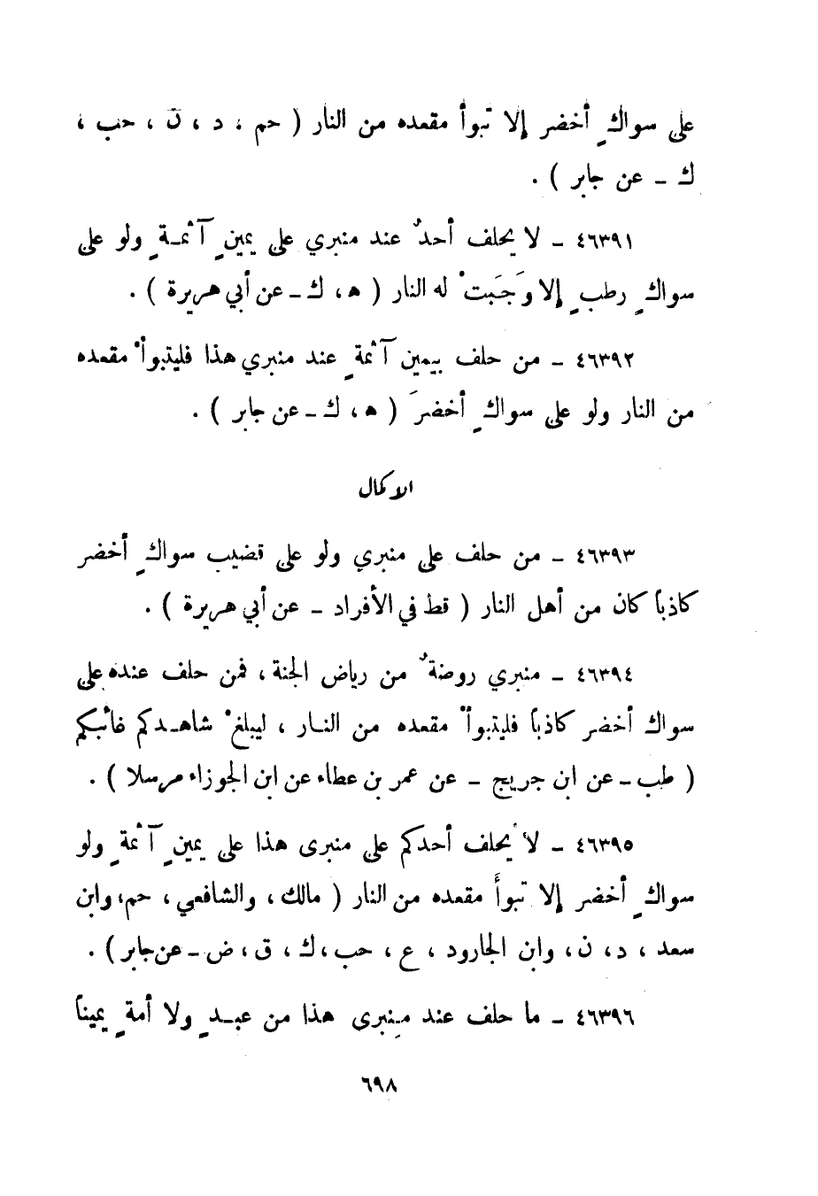 46396- "ما حلف عند منبرى هذا من عبد ولا أمة يمينا