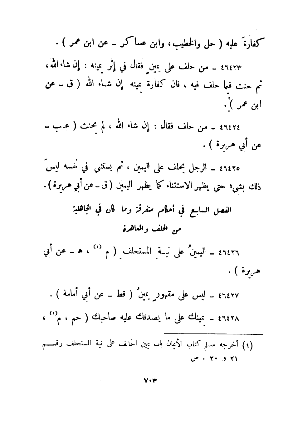 46426- "اليمين على نية المستحلف. " م 1، هـ - عن أبي هريرة".