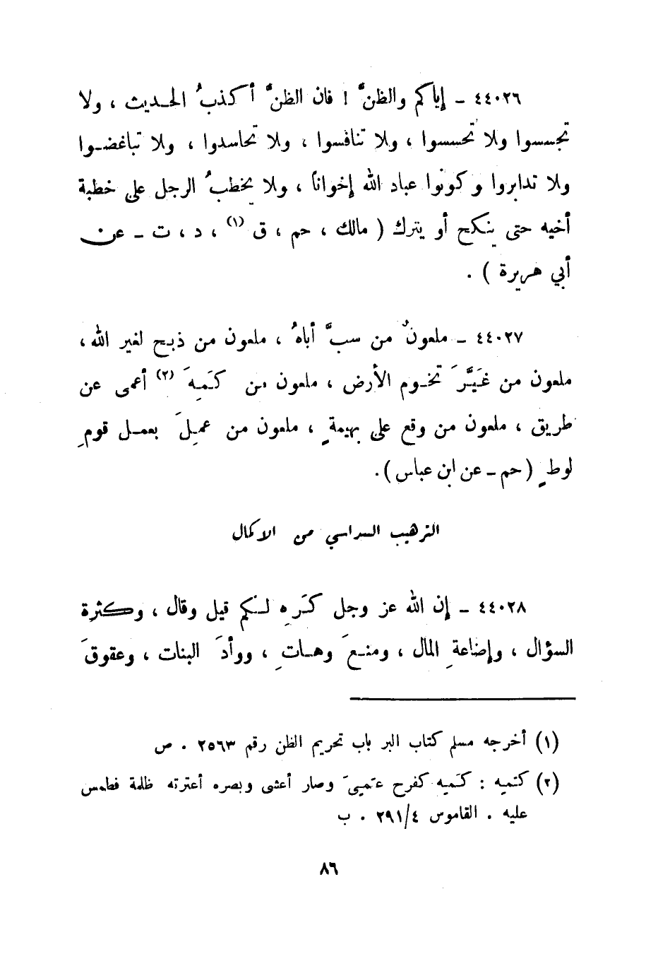 1 أخرجه مسلم كتاب البر باب تحريم الظن رقم 2563. ص.
