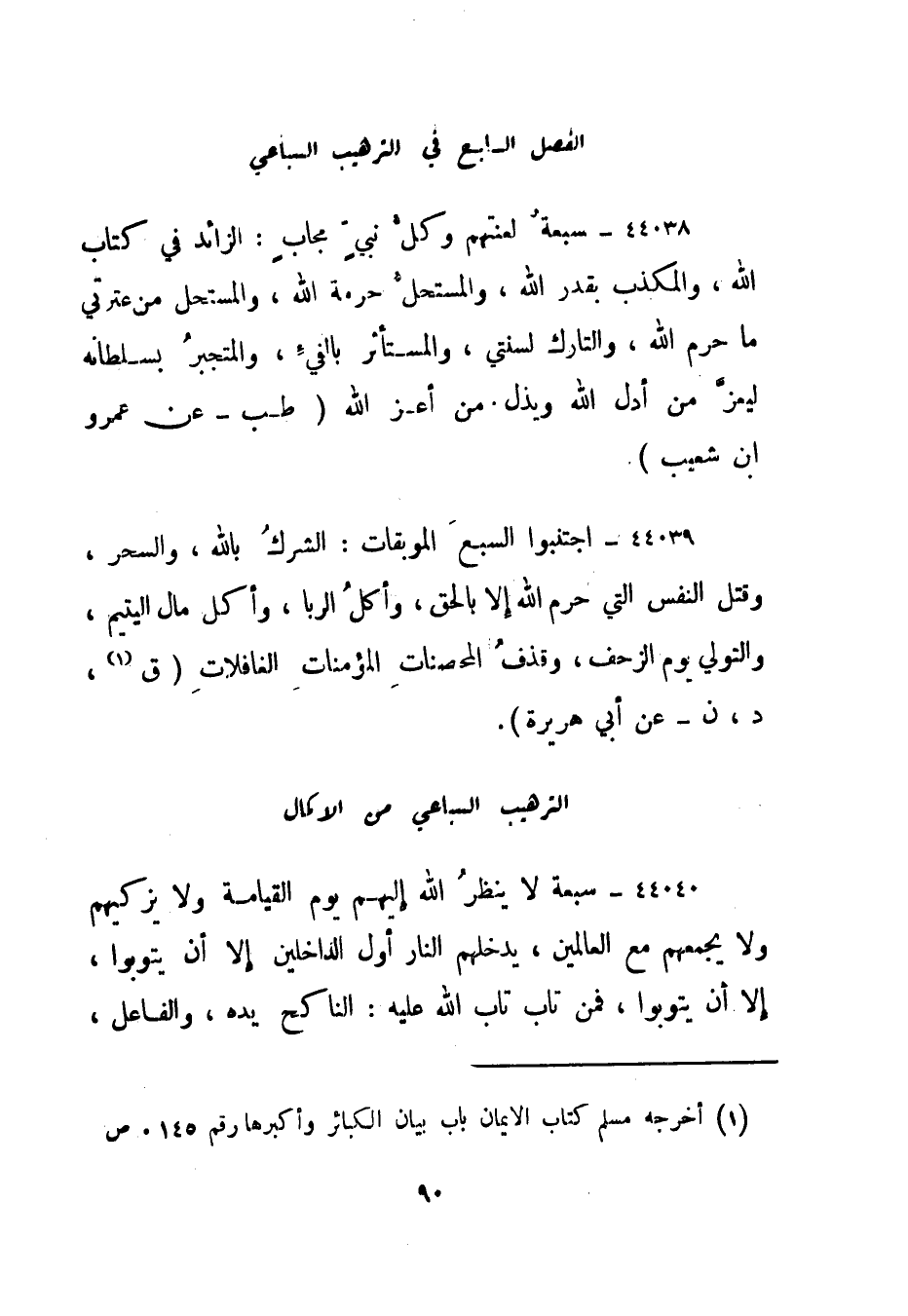 1 أخرجه مسلم كتاب الإيمان باب بيان الكبائر وأكبرها رقم 145. ص.