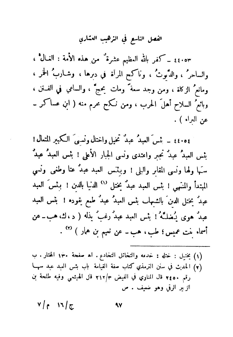 الفصل التاسع في الترهيب العشاري