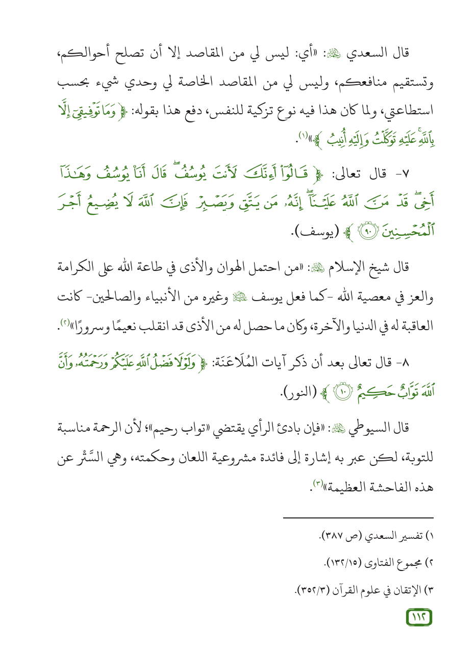 7 - قال تعالى: {قَالُوا أَإِنَّكَ لَأَنْتَ يُوسُفُ قَالَ أَنَا يُوسُفُ وَهَذَا أَخِي قَدْ مَنَّ اللَّهُ عَلَيْنَا إِنَّهُ مَنْ يَتَّقِ وَيَصْبِرْ فَإِنَّ اللَّهَ لَا يُضِيعُ أَجْرَ الْمُحْسِنِينَ (90)} (يوسف).