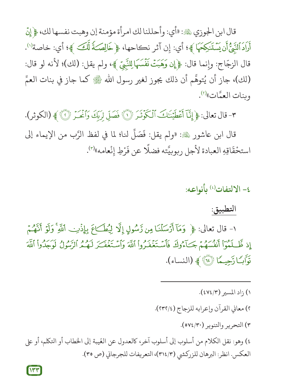 (¬4) وهو: نقل الكلام من أسلوب إلى أسلوب آخر، كالعدول عن الغَيبة إلى الخطاب أو التكلم، أو على العكس. انظر: البرهان للزركشي (3/ 314)، التعريفات للجرجاني (ص 35).