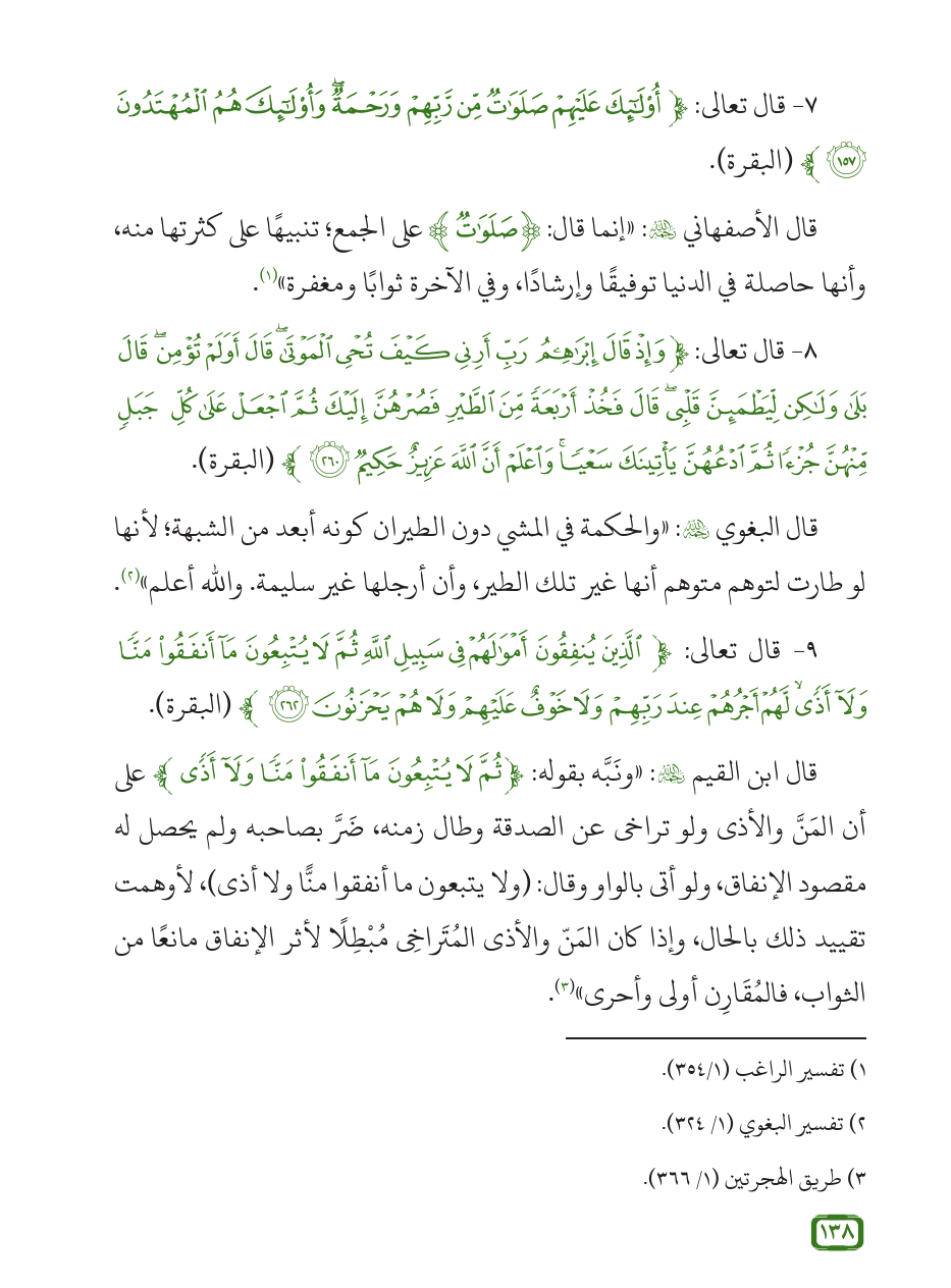 7 - قال تعالى: {أُولَئِكَ عَلَيْهِمْ صَلَوَاتٌ مِنْ رَبِّهِمْ وَرَحْمَةٌ وَأُولَئِكَ هُمُ الْمُهْتَدُونَ (157)} (البقرة).
