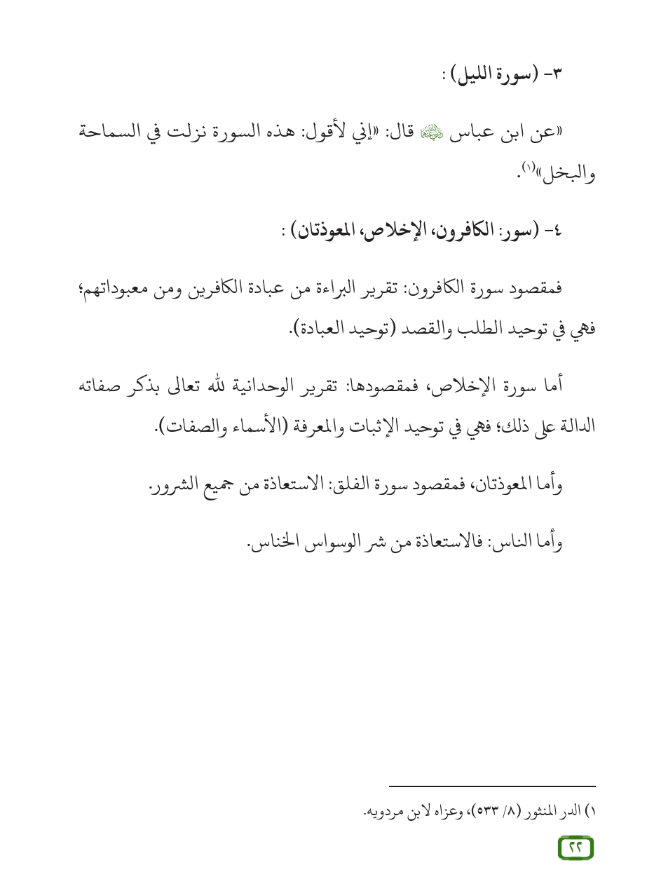 4 - (سور: الكافرون، الإخلاص، المعوذتان):
