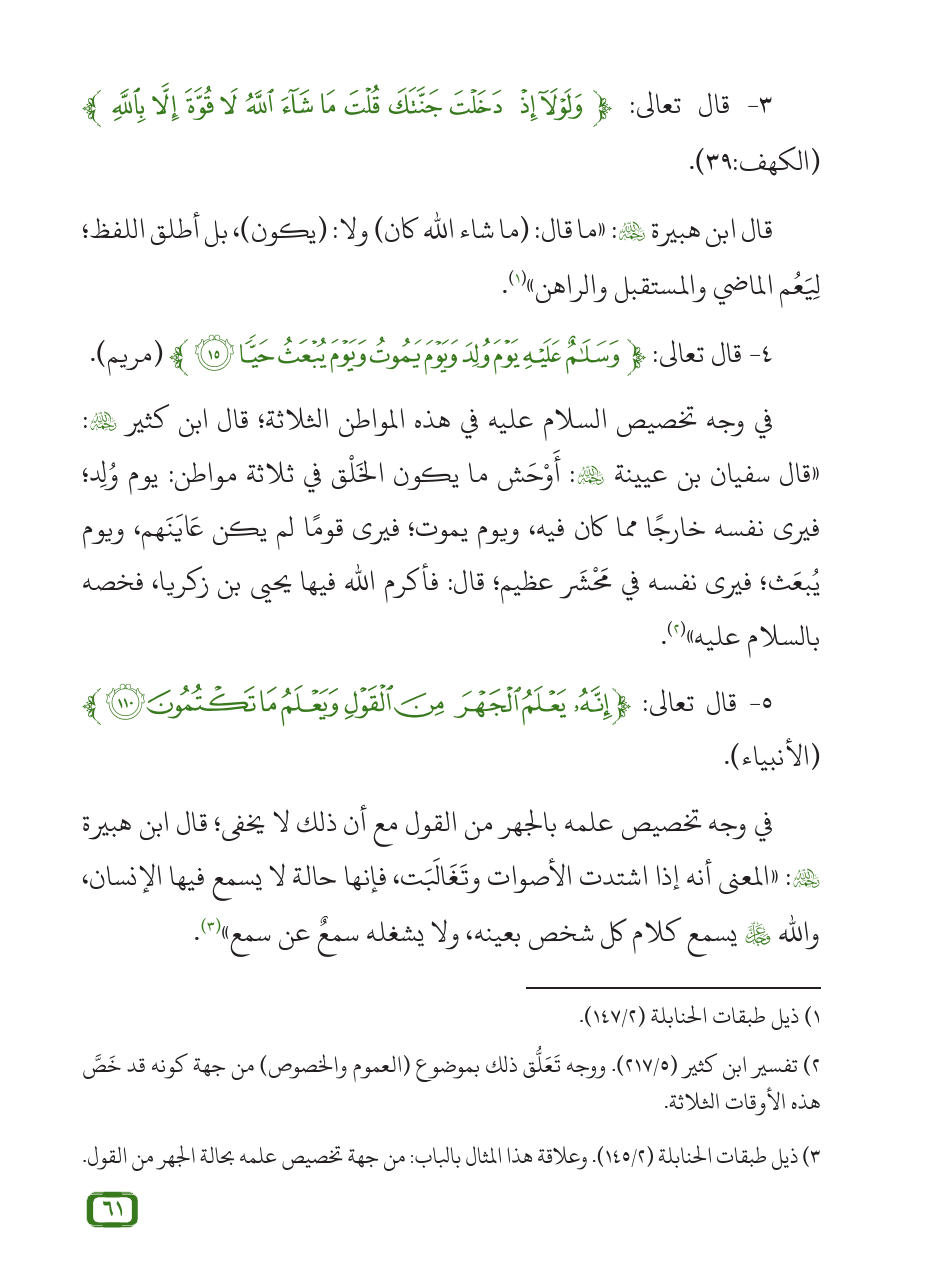 (¬3) ذيل طبقات الحنابلة (2/ 145). وعلاقة هذا المثال بالباب: من جهة تخصيص علمه بحالة الجهر من القول.