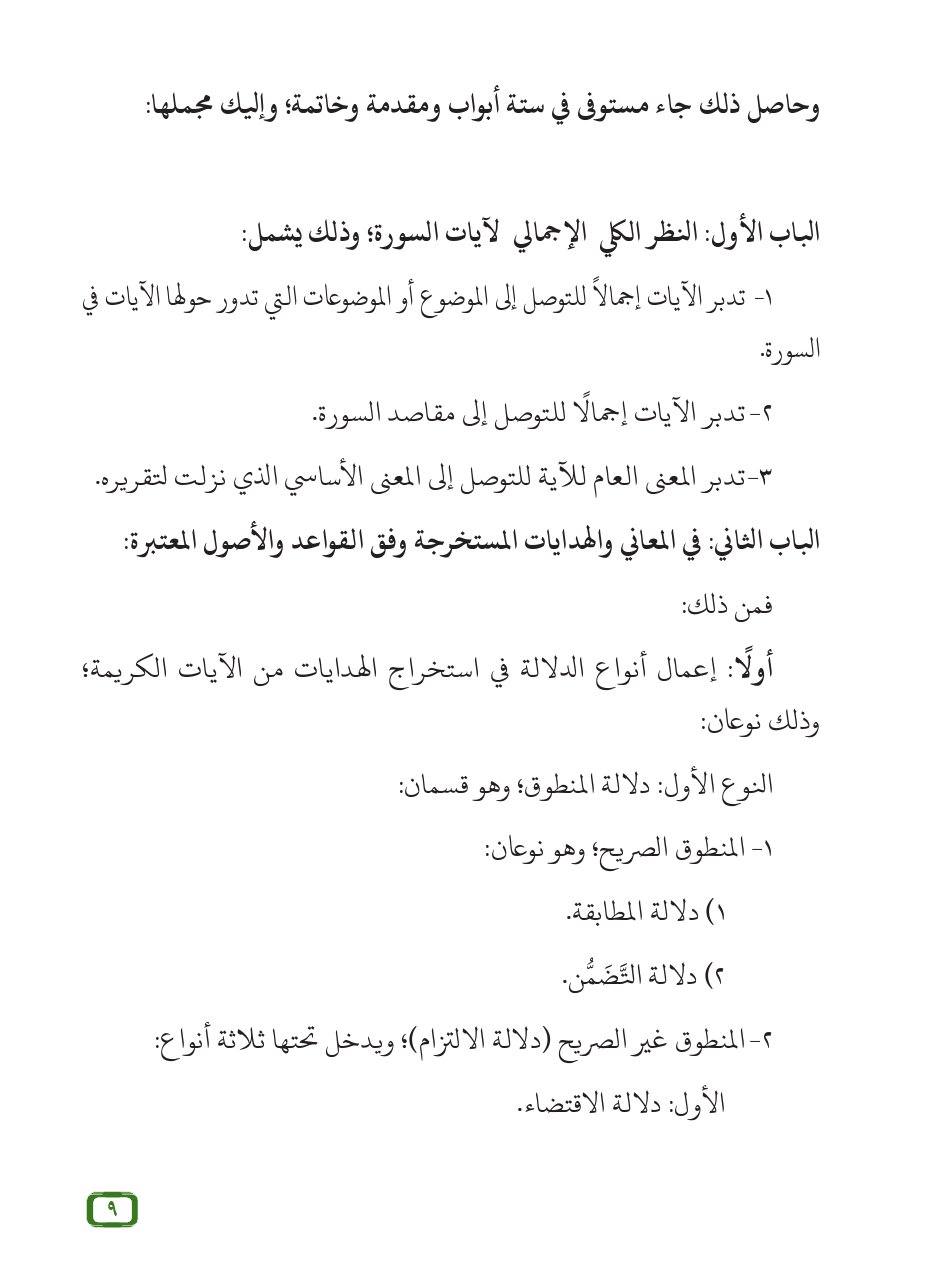 الباب الأول: النظر الكلي - الإجمالي - لآيات السورة؛ وذلك يشمل: