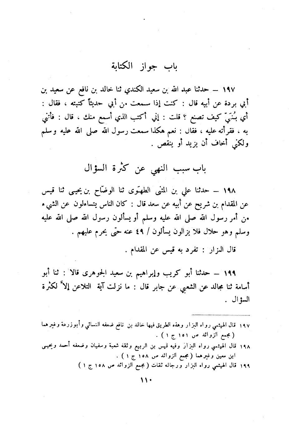 198 - حَدَّثَنَا عَلِيُّ بْنُ الْمُثَنَّى الطُّهَوِيُّ، ثنا الْوَضَّاحُ بْنُ يَحْيَى، ثنا قَيْسٌ، عَنِ الْمِقْدَامِ بْنِ شُرَيْحٍ، عَنْ أَبِيهِ، عَنْ سَعْدٍ، قَالَ: كَانَ النَّاسُ يَتَسَاءَلُونَ عَنِ الشَّيْءِ مِنْ أَمْرِ رَسُولِ اللَّهِ صَلَّى اللَّهُ عَلَيْهِ وَسَلَّمَ، أَوْ يَسْأَلُونَ رَسُولَ اللَّهِ صَلَّى اللَّهُ عَلَيْهِ وَسَلَّمَ، وَهُوَ حَلالٌ، فَلا يَزَالُونَ يَسْأَلُونَ عَنْهُ حَتَّى يَحْرُمَ عَلَيْهِمْ.