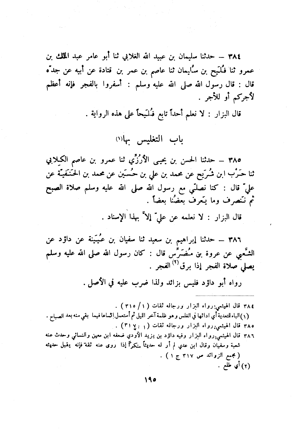 386 - حَدَّثَنَا إِبْرَاهِيمُ بْنُ سَعِيدٍ، ثنا سُفْيَانُ بْنُ عُيَيْنَةَ، عَنْ دَاوُدَ، عَنِ الشَّعْبِيِّ، عَنْ عُرْوَةَ بْنِ مُضَرِّسٍ، قَالَ: كَانَ رَسُولُ اللَّهِ صَلَّى اللَّهُ عَلَيْهِ وَسَلَّمَ «يُصَلِّي صَلاةَ الْفَجْرِ إِذَا بَرَقَ الْفَجْرُ» .