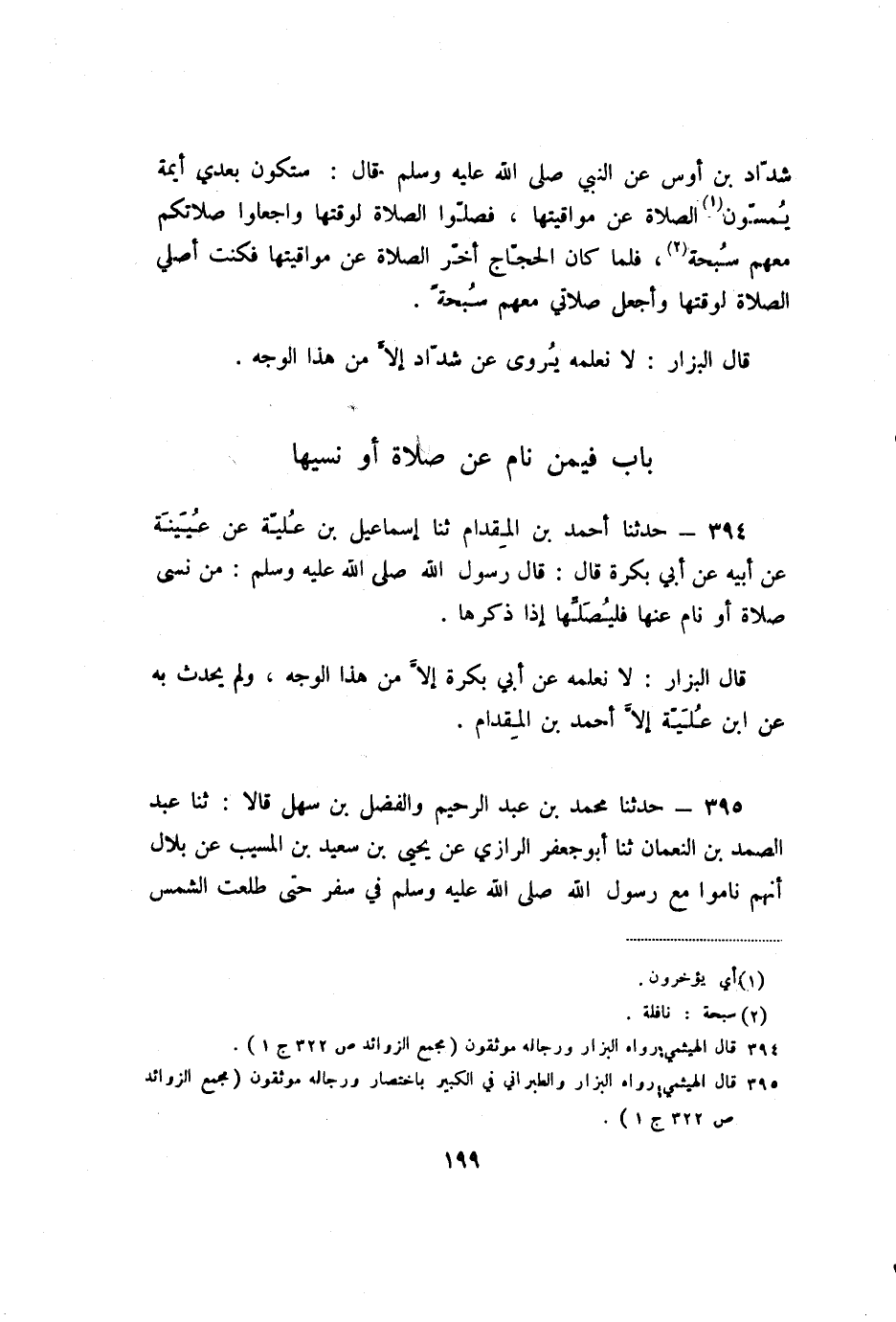 395 - حَدَّثَنَا مُحَمَّدُ بْنُ عَبْدِ الرَّحِيمِ، وَالْفَضْلُ بْنُ سَهْلٍ، قَالا: ثنا عَبْدُ الصَّمَدِ بْنُ النُّعْمَانِ، ثنا أَبُو جَعْفَرٍ الرَّازِيُّ، عَنْ يَحْيَى بْنِ سَعِيدِ عَنْ سَعِيدِ بْنِ الْمُسَيِّبِ، عَنْ بِلالٍ، أَنَّهُمْ نَامُوا مَعَ رَسُولِ اللَّهِ صَلَّى اللَّهُ عَلَيْهِ وَسَلَّمَ فِي سَفَرٍ حَتَّى طَلَعَتِ الشَّمْسُ،