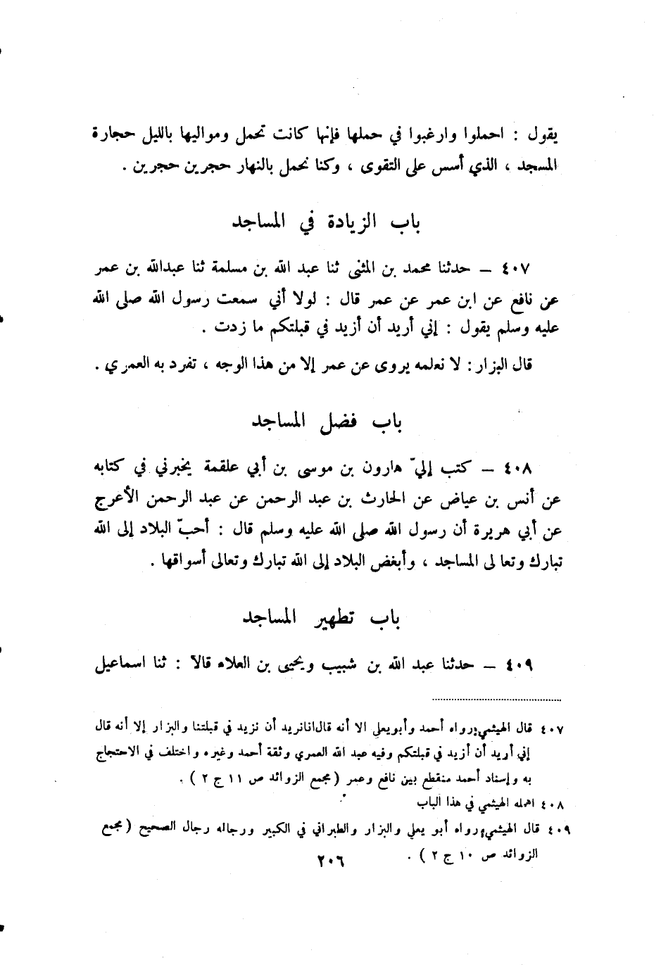 407 - حَدَّثَنَا مُحَمَّدُ بْنُ الْمُثَنَّى، ثنا عَبْدُ اللَّهِ بْنُ مَسْلَمَةَ، ثنا عَبْدُ اللَّهِ بْنُ عُمَرَ، عَنْ نَافِعٍ، عَنِ ابْنِ عُمَرَ، عَنْ عُمَرَ، قَالَ: لَوْلا أَنِّي سَمِعْتُ رَسُولَ اللَّهِ صَلَّى اللَّهُ عَلَيْهِ وَسَلَّمَ يَقُولُ: «إِنِّي أُرِيدُ أَنْ أَزِيدَ فِي قِبْلَتِكُمْ مَا زِدْتُ» .