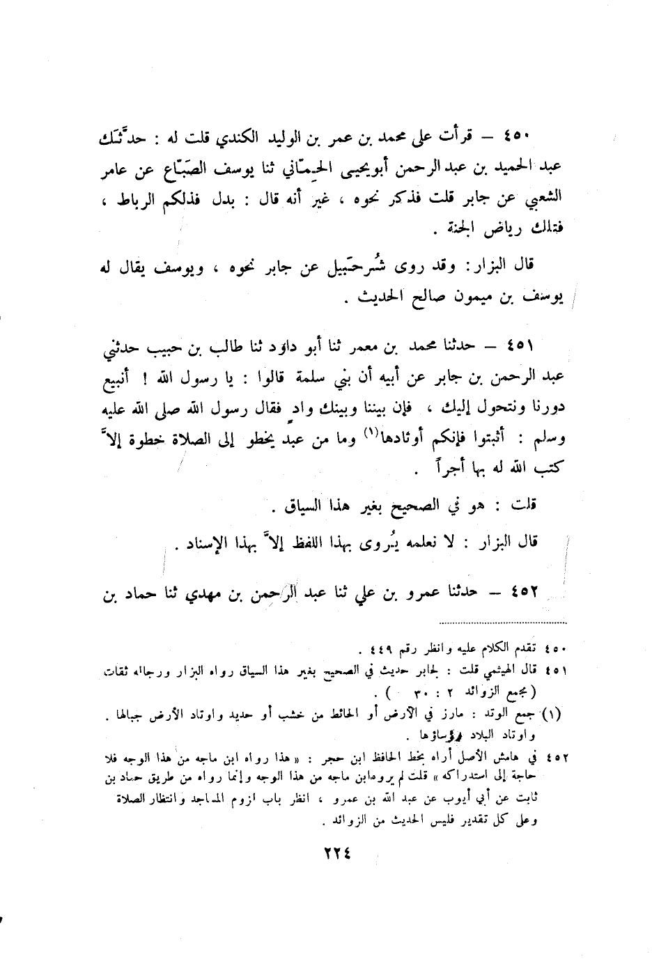 450 - قَرَأْتُ عَلَى مُحَمَّدِ بْنِ عُمَرَ بْنِ الْوَلِيدِ الْكِنْدِيِّ، قُلْتُ لَهُ: حَدَّثَكَ عَبْدُ الْحَمِيدِ بْنُ عَبْدِ الرَّحْمَنِ أَبُو يَحْيَى الْحِمَّانِيُّ، ثنا يُوسُفُ الصَّبَّاغُ، عَنْ عَامِرٍ الشَّعْبِيِّ، عَنْ جَابِر ٍ، قُلْتُ: فَذَكَرَ نَحْوَهُ، غَيْرَ أَنَّهُ قَالَ: بَدَلَ «فَذَلِكُمُ الرِّبَاطُ» ، «فَتِلْكَ رِيَاضُ الْجَنَّةِ» .