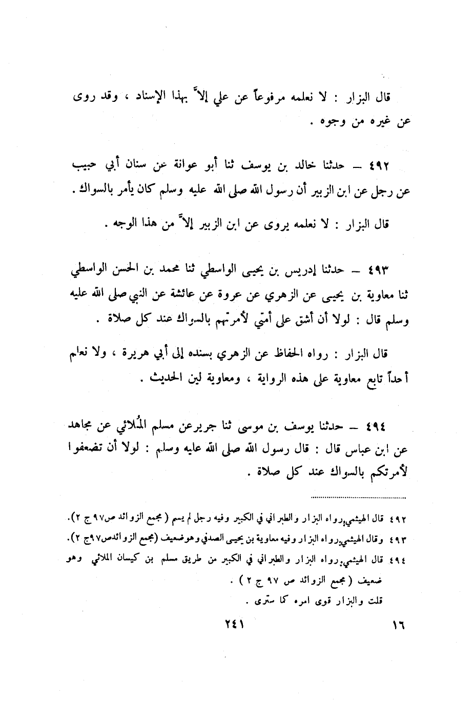 492 - حَدَّثَنَا خَالِدُ بْنُ يُوسُفَ، ثنا أَبُو عَوَانَةَ، عَنْ سِنَانٍ أَبِي حَبِيبٍ، عَنْ رَجُلٍ، عَنِ ابْنِ الزُّبَيْرِ، أَنَّ رَسُولَ اللَّهِ صَلَّى اللَّهُ عَلَيْهِ وَسَلَّمَ كَانَ يَأْمُرُ بِالسِّوَاكِ.