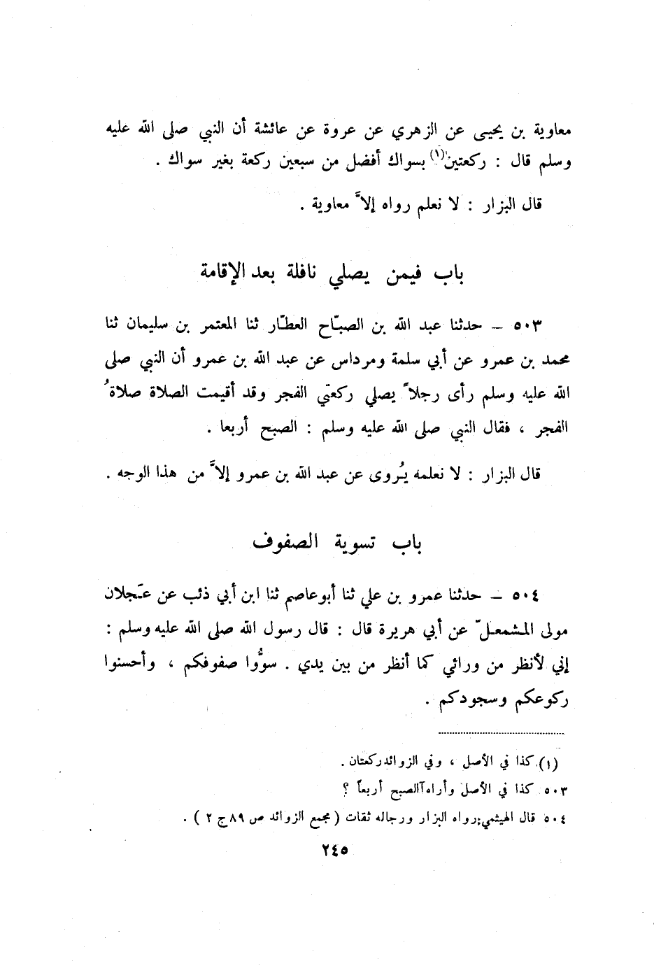503 - حَدَّثَنَا عَبْدُ اللَّهِ بْنُ الصَّبَّاحِ الْعَطَّارُ، ثنا الْمُعْتَمِرُ بْنُ سُلَيْمَانَ، ثنا مُحَمَّدُ بْنُ عَمْرٍو، عَنْ أَبِي سَلَمَةَ، وَمِرْدَاسٍ، عَنْ عَبْدِ اللَّهِ بْنِ عَمْرٍو، أَنَّ النَّبِيَّ صَلَّى اللَّهُ عَلَيْهِ وَسَلَّمَ رَأَى رَجُلا يُصَلِّي رَكْعَتَيِ الْفَجْرِ، وَقَدْ أُقِيمَتِ الصَّلاةُ صَلاةُ الْفَجْرِ، فَقَالَ النَّبِيُّ صَلَّى اللَّهُ عَلَيْهِ وَسَلَّمَ: «الصُّبْحُ أَرْبَعًا» .