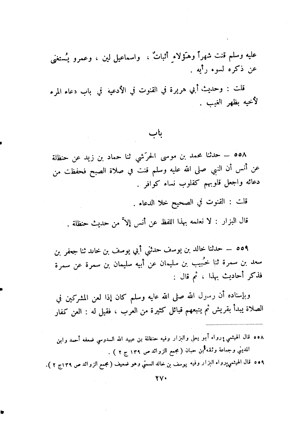 عَلَيْهِ وَسَلَّمَ قَنَتَ شَهْرًا، وَهَؤُلاءِ أَثْبَاتٌ، وَإِسْمَاعِيلُ لَيِّنٌ، وَعَمْرٌو يُسْتَغْنَى عَنْ ذِكْرِهِ لِسُوءِ رَأْيِهِ.