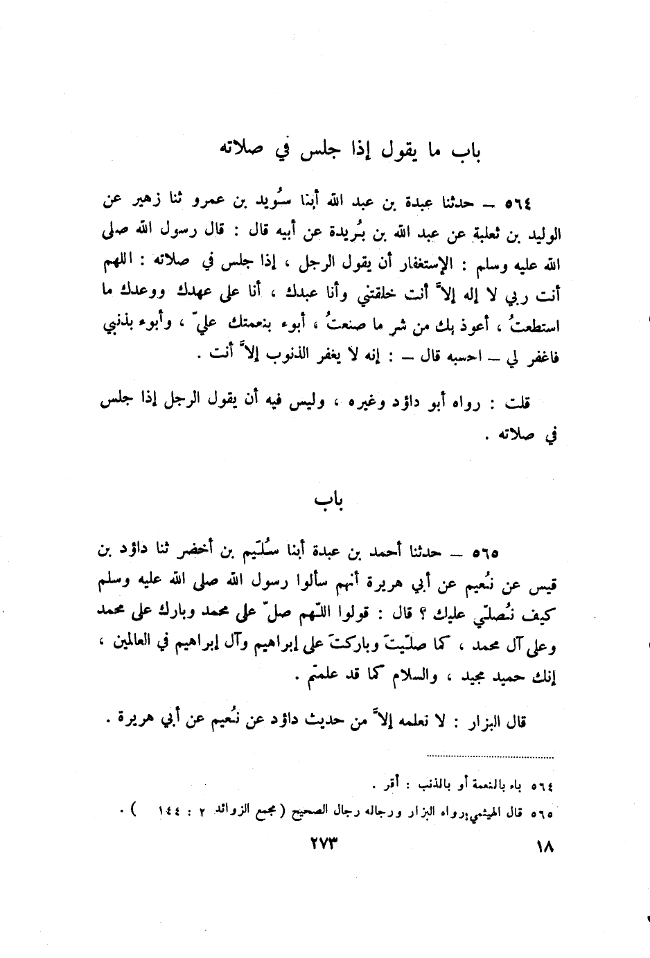 قُلْتُ: رَوَاهُ أَبُو دَاوُدَ وَغَيْرُهُ، وَلَيْسَ فِيهِ: «أَنْ يَقُولَ الرَّجُلُ إِذَا جَلَسَ فِي صَلاتِهِ» .